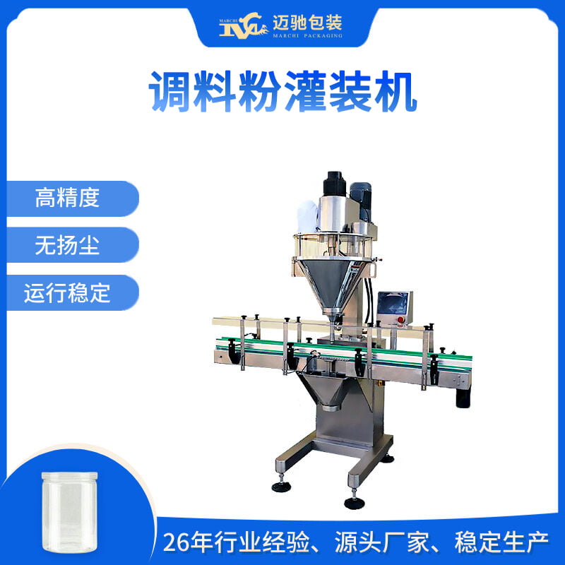 迈驰是一家专业生产调料粉灌装机、瓶装粉灌装机流水线的厂家,可根据客户不同粉料特性定制一对一方案,精度高、无扬尘、自动化灌装。26年包装行业经验,助力生产企业稳定生产,提高产能。