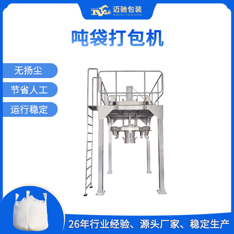 迈驰是一家专业生产粉末、颗粒吨袋打包机、吨袋包装秤自动化生产线厂家,可根据客户不同粉料特性定制一对一方案,吨袋包装设备,吨袋灌装机,吨袋包装机生产线等设备。26年包装行业经验,助力生产企业稳定生产,提高产能。